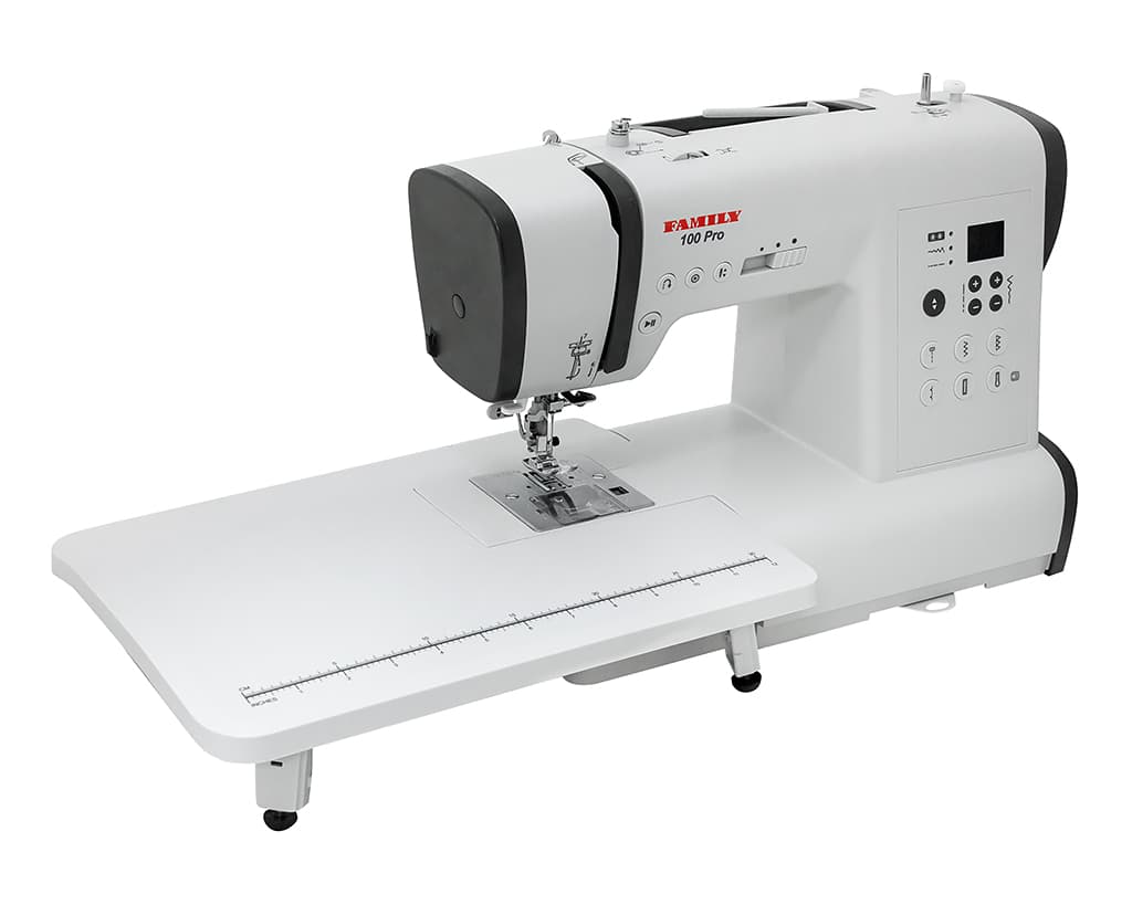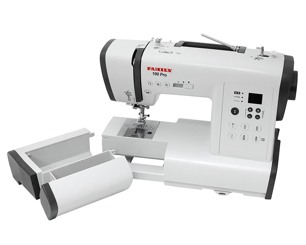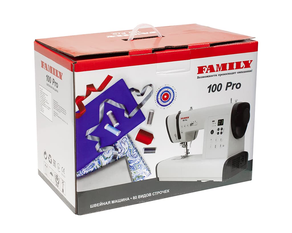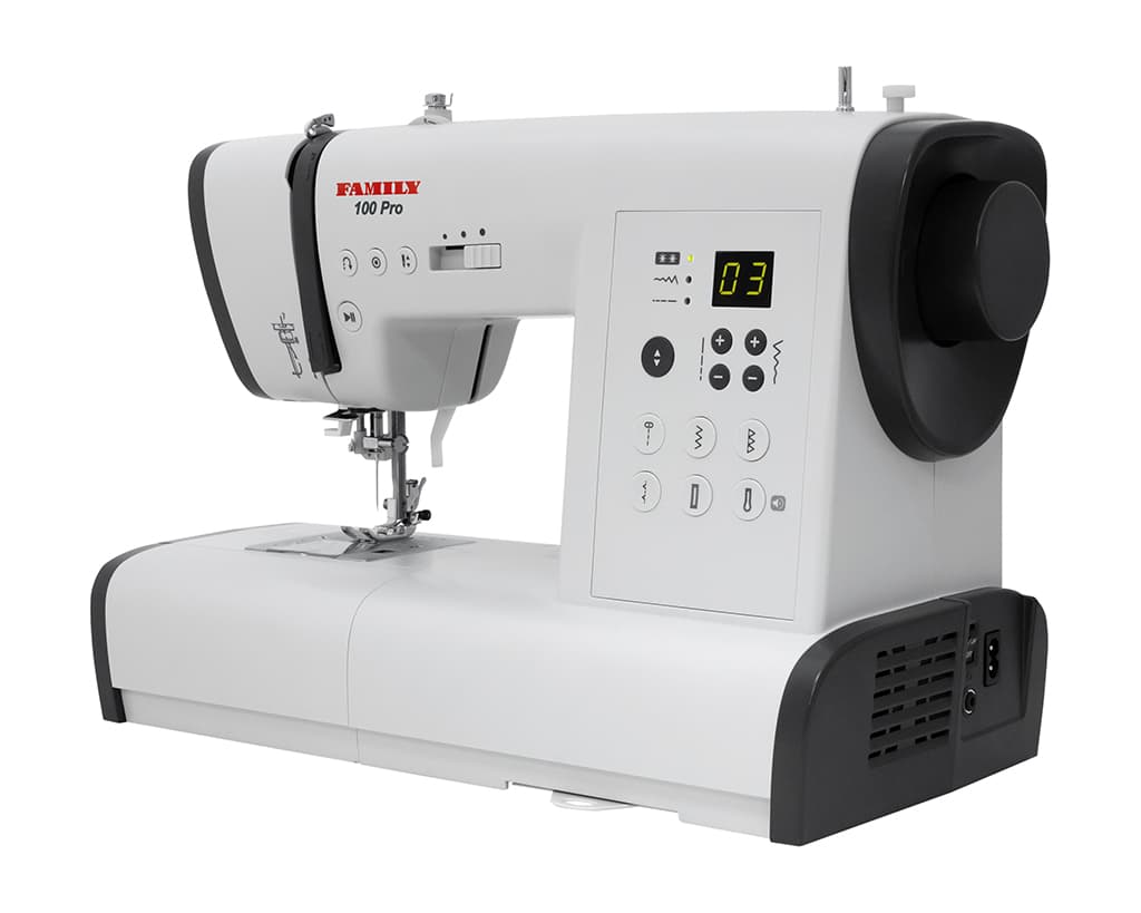 Встречайте новую серию швейных машин Pro от английского бренда Family! С ними вы действительно почувствуете себя профессионалом в области шитья и ощутите все достоинства работы электронных машин. Family 100 Pro обладает горизонтальным челноком, который не нуждается в смазке, она проста в управлении, а благодаря множеству нужных и полезных функций способствует быстрому и легкому шитью. Стабилизатор усилия прокола иглы позволяет получать качественную строчку на любых видах ткани. Большой комплект аксессуаров включает не только 7 лапок для различных швейных операций, но и расширительный столик. Необычная форма и матовый пластик серых оттенков - отличительная черта серии Pro. Наслаждайтесь работой и совершенствуйте ваши навыки!