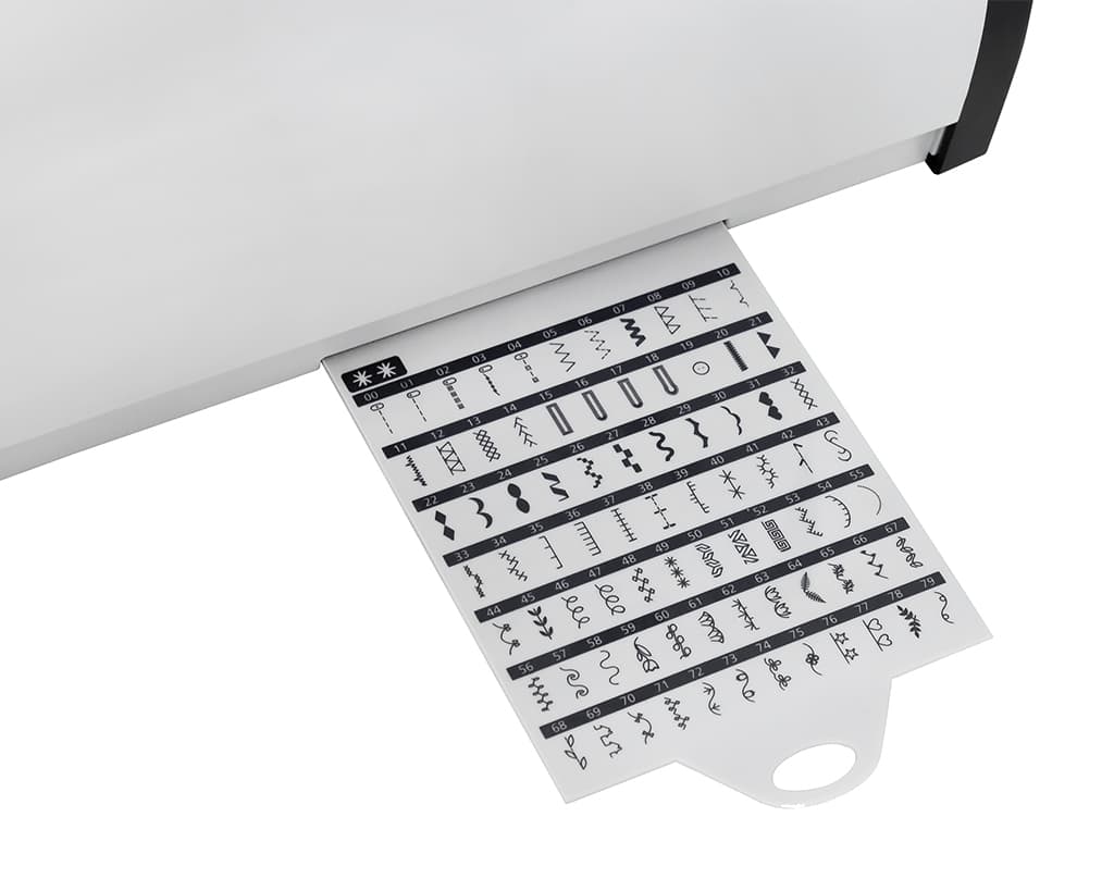 Удобная и наглядная выдвижная таблица со всеми видами операций позволит быстро выбрать ту самую строчку среди большого множества для воплощения в жизнь ваших творческих идей. Выбирайте среди различных рабочих, атласных и декоративных строчек для шитья ваших проектов, обработки края и добавления интересных деталей.