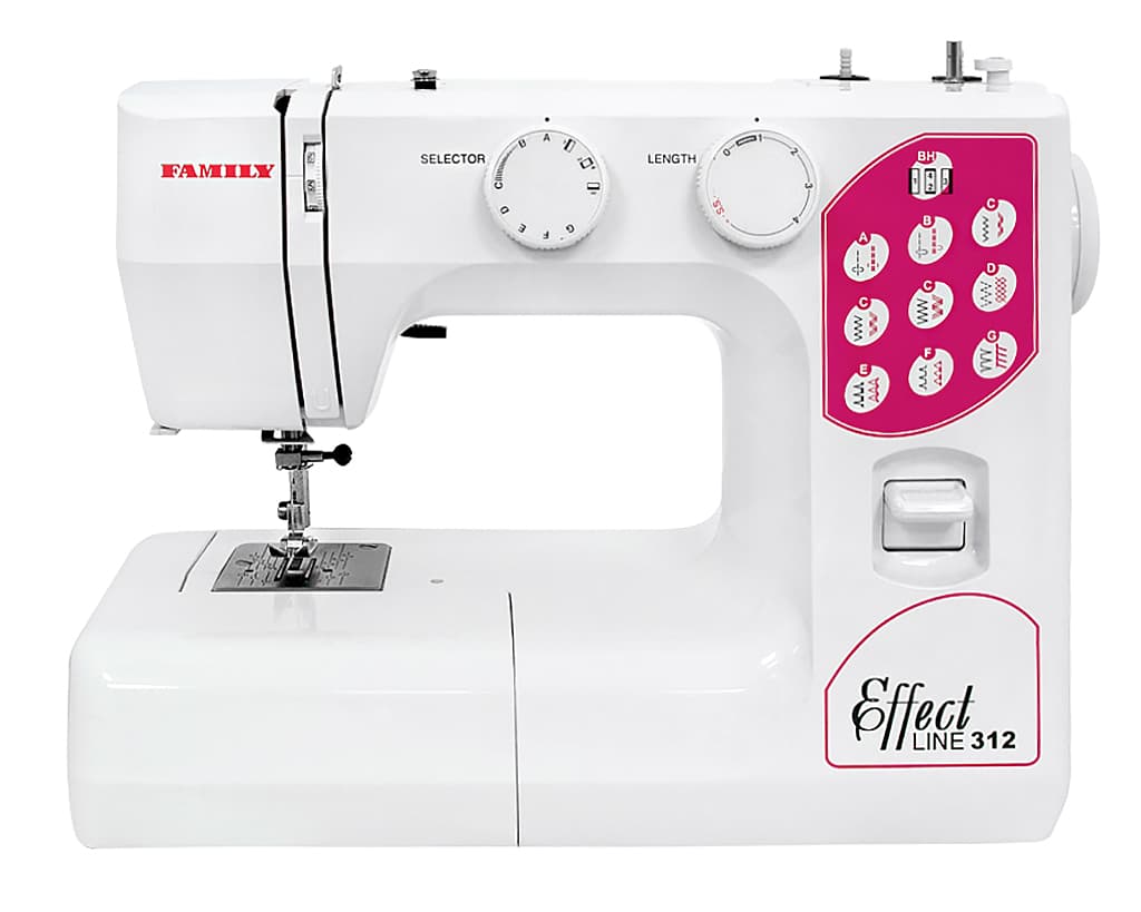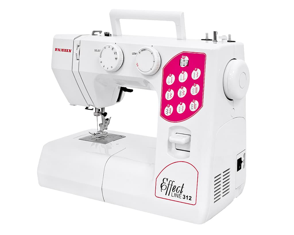 Швейная машина Family 312 с классическим вертикальным челночным устройством качающегося типа очень проста в использовании, имеет 12 наиболее необходимых видов строчек и полуавтоматическое выметывание петли. С помощью рычага заднего хода вы сможете выполнить закрепки в начале и в конце строчки. Регулировка натяжения нити позволит Вам добиться качественной строчки на разных видах ткани. Машина позволяет опустить зубцы транспортера с помощью специального рычага, что позволит вам работать в технике свободного передвижения.