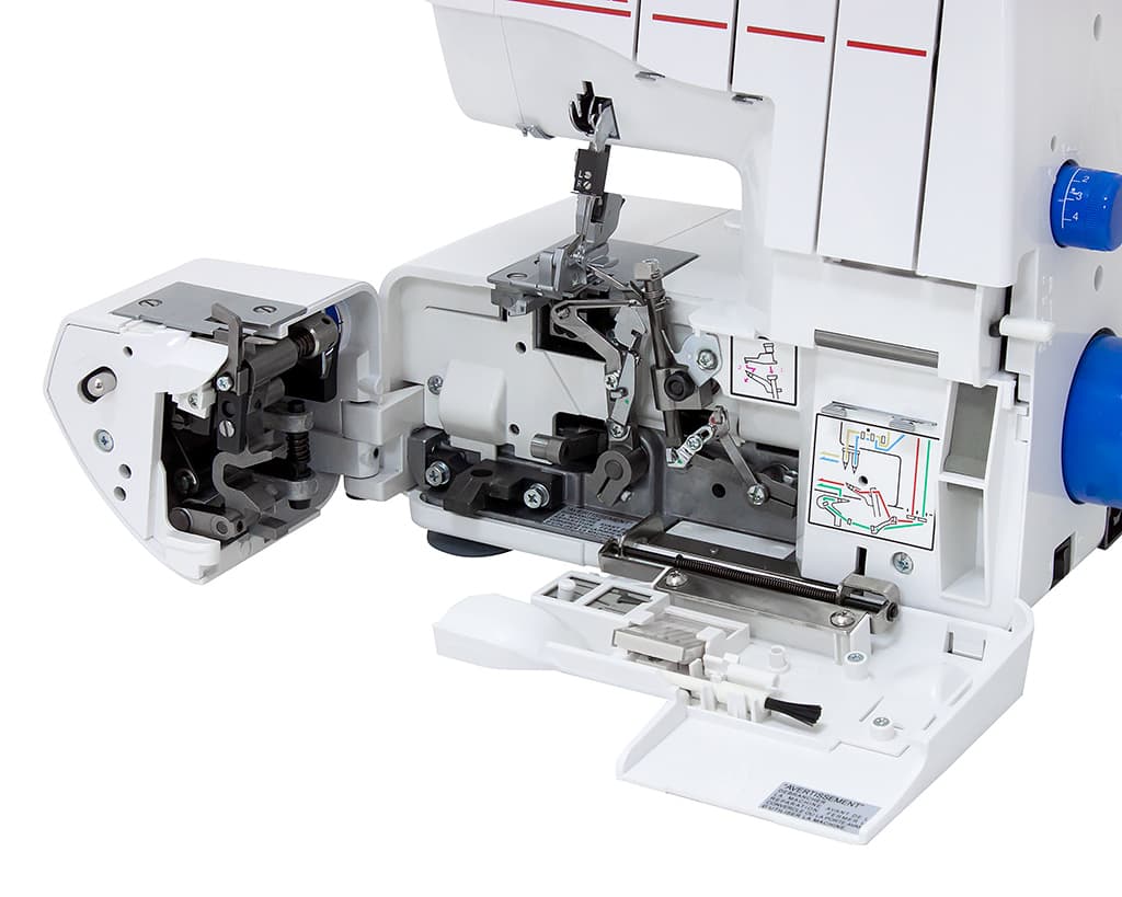 Благодаря особой конструкции оверлока, которая позволяет вам отсоединить платформу, вы сможете быстро и не прилагая особых усилий заправить нить в петлители. Все детали у вас перед глазами!