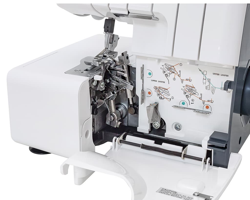Цветная маркировка, схема за передней крышкой и особая конструкция со специальным переключателем помогут вам быстро и не прилагая особых усилий выполнить заправку нитей в петлители.