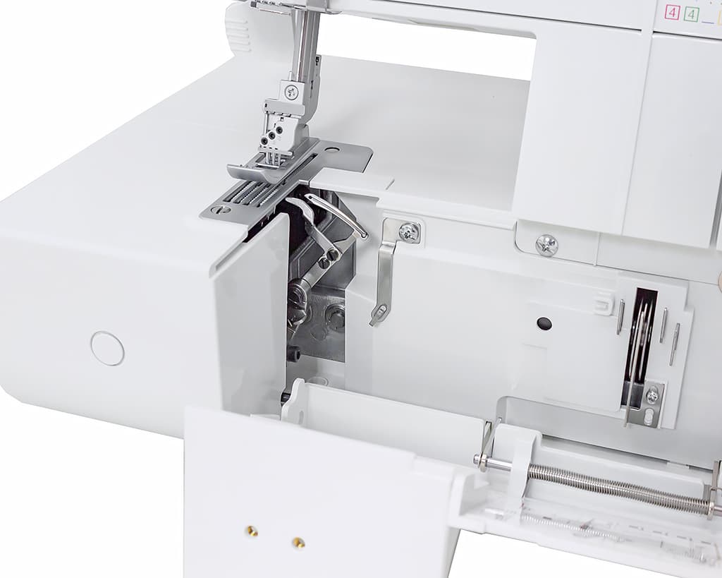 Благодаря особой конструкции и специальному переключателю вы сможете быстро и не прилагая особых усилий заправить нить в петлитель.